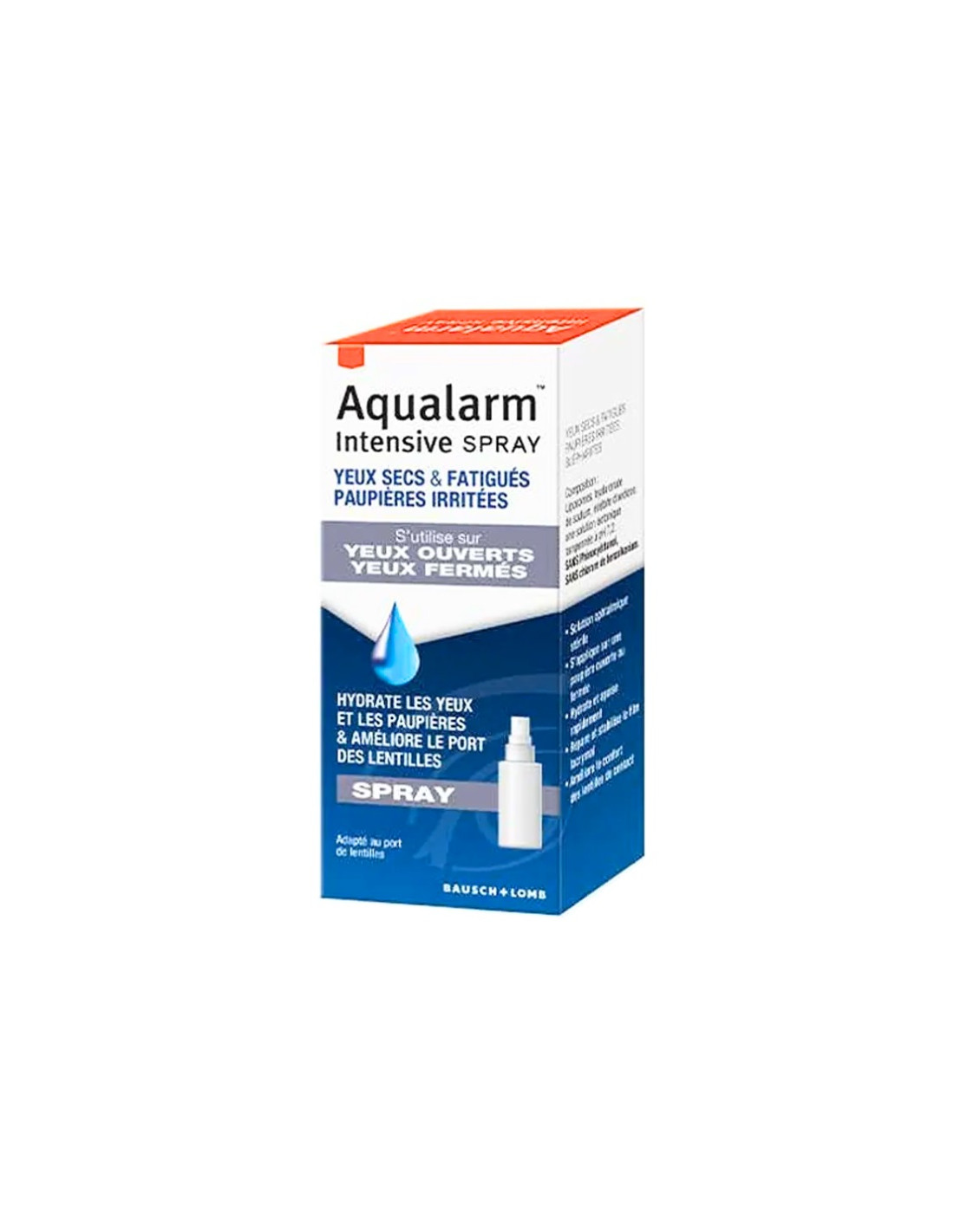 Bausch + Lomb Aqualarm Intensive Spray 10 ml est une solution ophtalmique stérile qui s'applique sur une paupière ouverte ou fermée. Elle hydrate et apaise rapidement, répare et stabilise le film lacrymal et améliore le confort des lentilles de contact.
