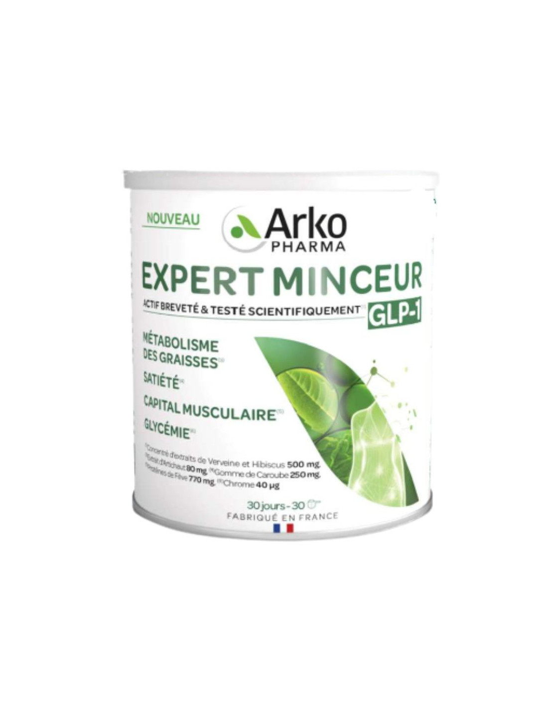 Nouveau complément alimentaire minceur de Arkopharma : inspiré des aGLP-1 (hormone intestinale qui favorise la satiété et stimule la sécretion d'insuline), ce produit aide à favoriser le métabolisme des graisses, la satiété, à préserver une glycémie normale et le capital musculaire. Idéal pour : les femmes et les hommes avec un surpoids modéré (3-6 kilos), les femmes ménopausées, les adultes présentant des troubles métaboliques et prédiabète...