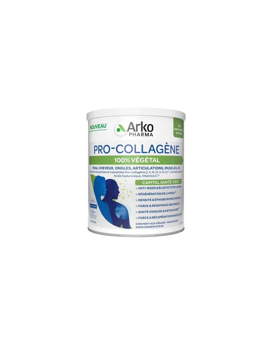 Arkopharma innove avec concentré de peptides et tripeptides procollagène 100 % d’origine végétale et biomimétiques, capables de relancer la production des principaux types de collagène (I, II, III, IV, V, VI, X) dans l’organisme.