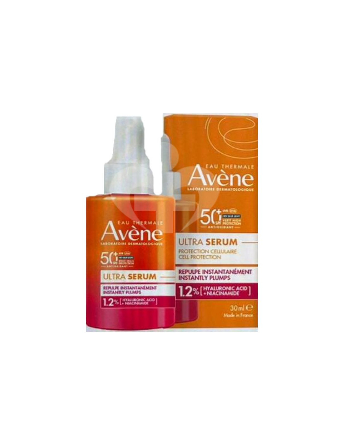 Le sérum repulpant solaire SPF50 Avène contient le système filtrant anti-UVA et UVB TriAsorB™ breveté et un complexe de vitamines (Cg, Eg, B3), associé à 1.2% d'Acide Hyaluronique et de la Niacinamide pour repulper instantanément la peau du visage.