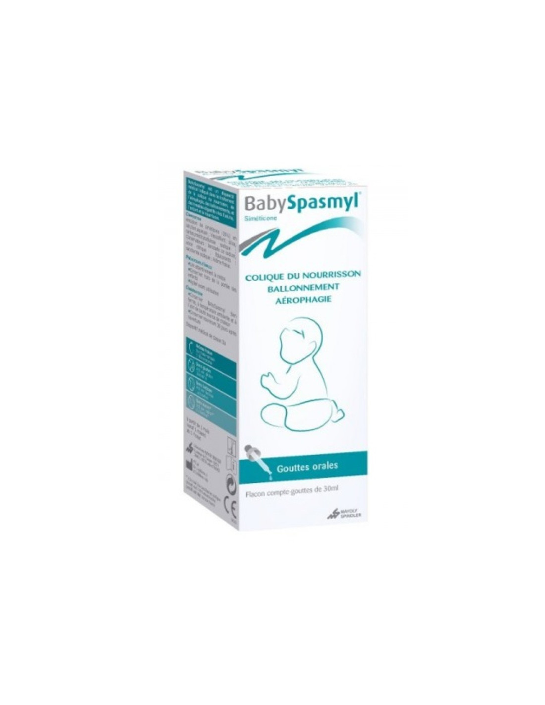 Le dispositif médical Baby Spasmyl des laboratoires Mayoly Spindler est indiqué pour réduire et soulager les coliques du nourrisson dues à de l'aérophagie et à des ballonnements, liés à des troubles digestifs. Ces coliques se caractérisent par des spasmes et douleurs abdominales. Il peut être utilisé chez les bébés dès la naissance, mais aussi chez l'enfant et l'adulte.