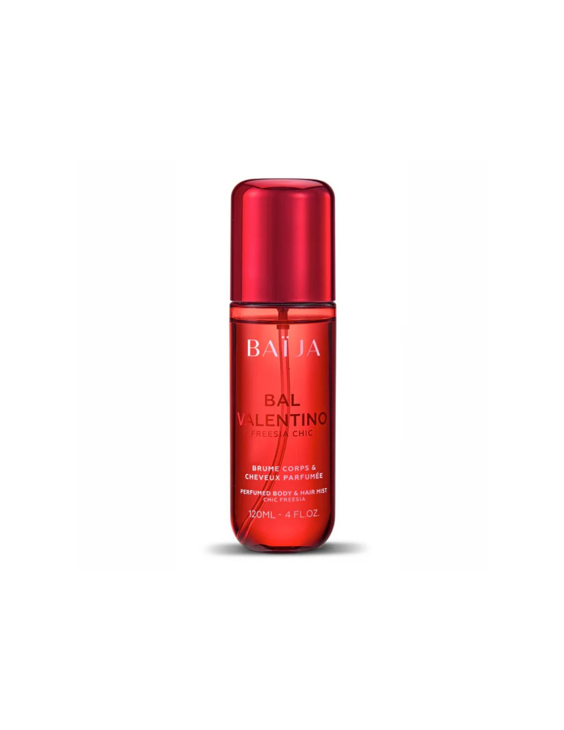 La brume corps et cheveux Bal Valentino Baïja est un soin parfumé léger conçu pour sublimer la peau et les cheveux tout au long de la journée. Elle est idéale pour les personnes recherchant une alternative plus douce et aérienne au parfum classique.