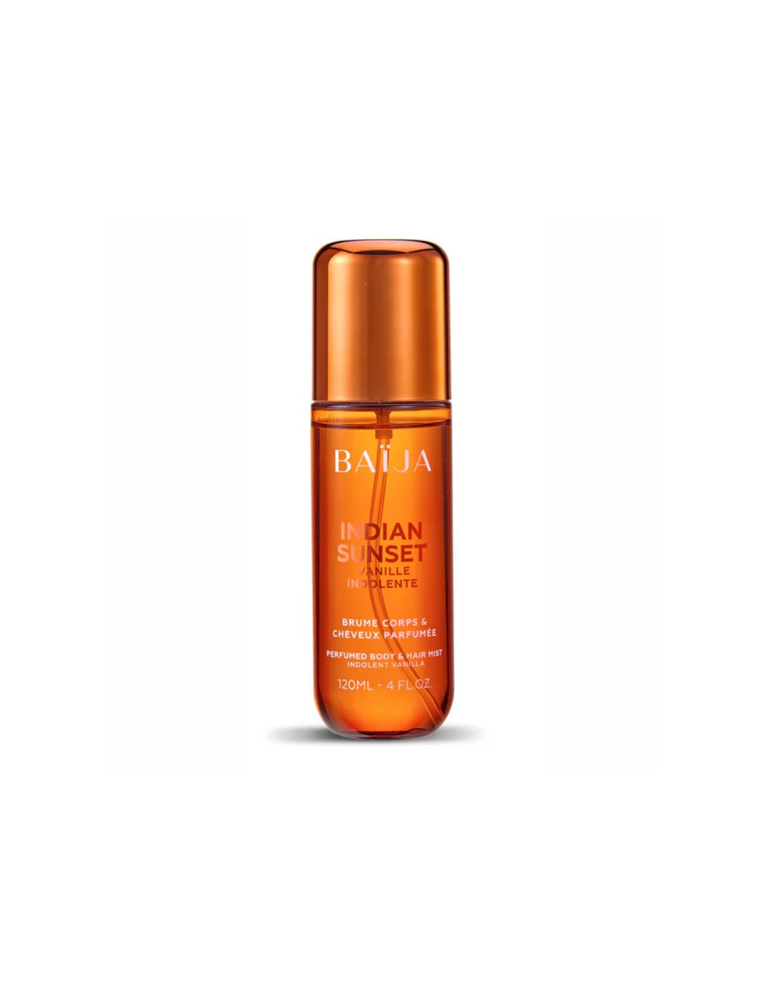 La brume corps et cheveux Indian Sunset Baïja est un soin parfumé léger conçu pour envelopper la peau et les cheveux d’un parfum chaud et réconfortant. Elle est idéale pour les personnes recherchant une alternative douce et sensorielle au parfum classique.