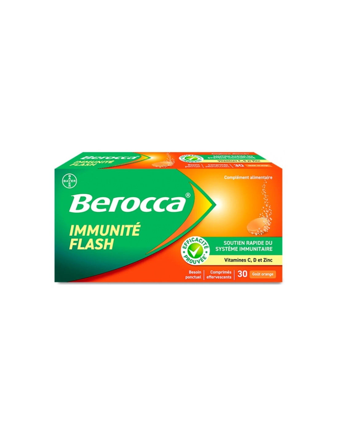 Berocca Immunité Flash Goût Orange est un complément alimentaire avec édulcorants, dont sa formule est dédiée au soutien de votre système immunitaire.