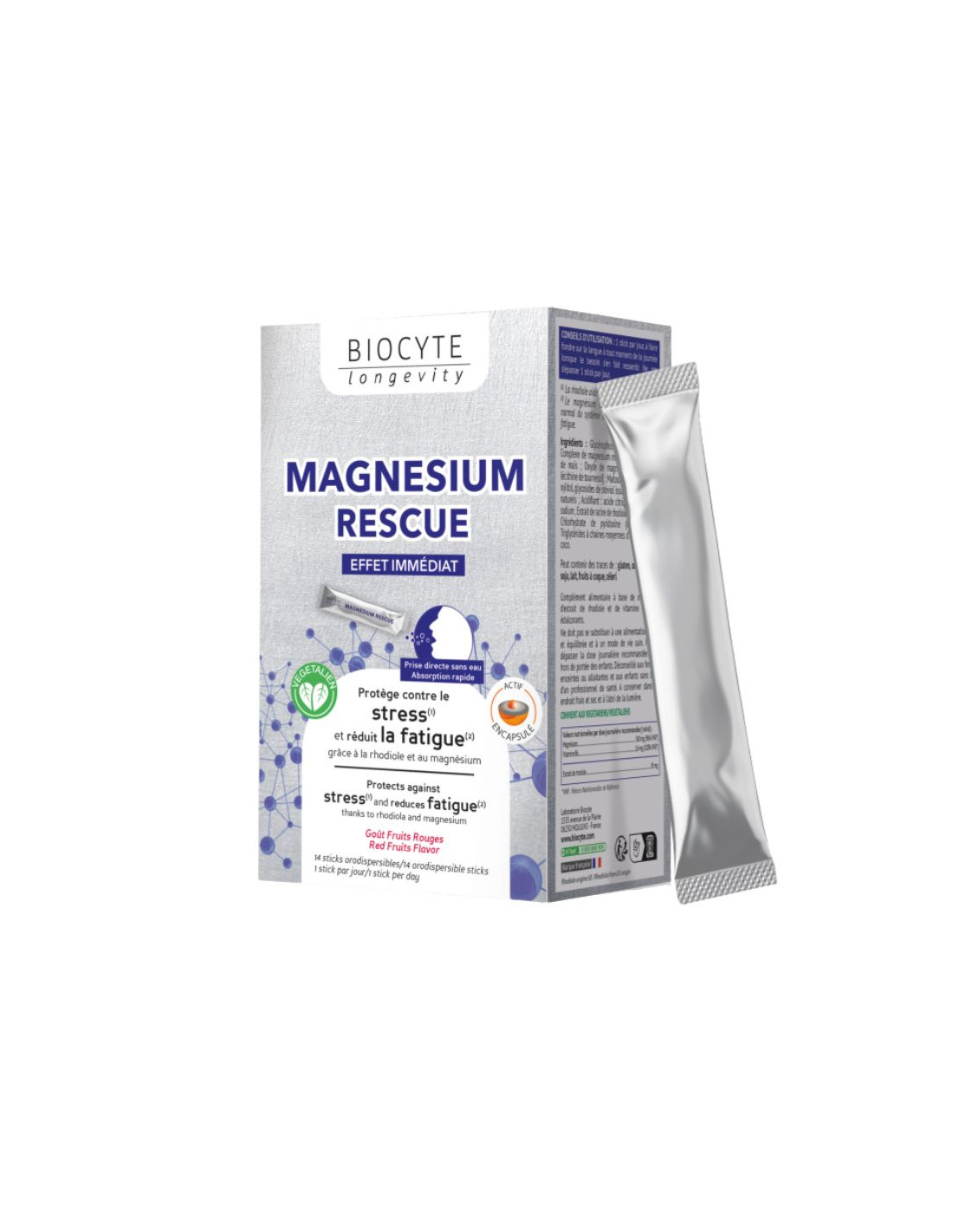 Biocyte Magnésium Rescue est un complément alimentaire contenant du magnésium hautement dosé à 360mg, de la vitamine B6 et de l’extrait de rhodiole. Une formule complète unique qui aide au fonctionnement normal du système nerveux et à réduire la fatigue.