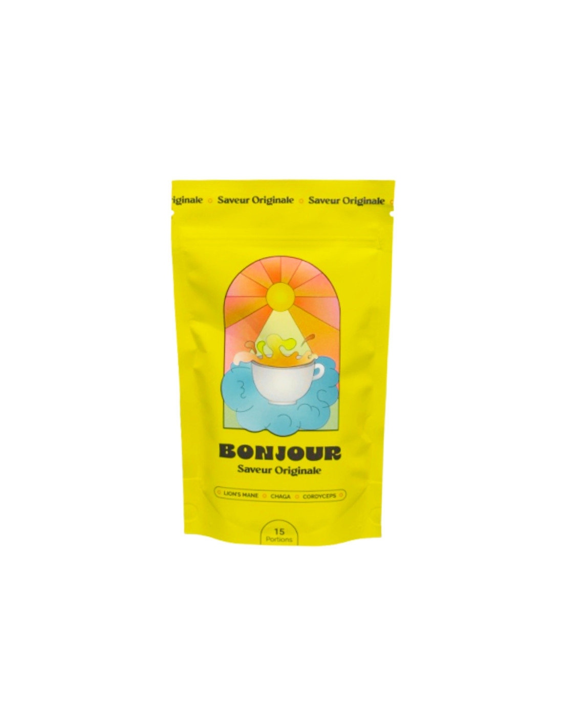 La boisson Bonjour Originale est une formule unique, 100% naturelle, à base d’extraits de champignons adaptogènes biologiques, pour un rituel bien-être qui nourrit le corps et l’esprit. Favorise une digestion apaisée et un sommeil paisible.