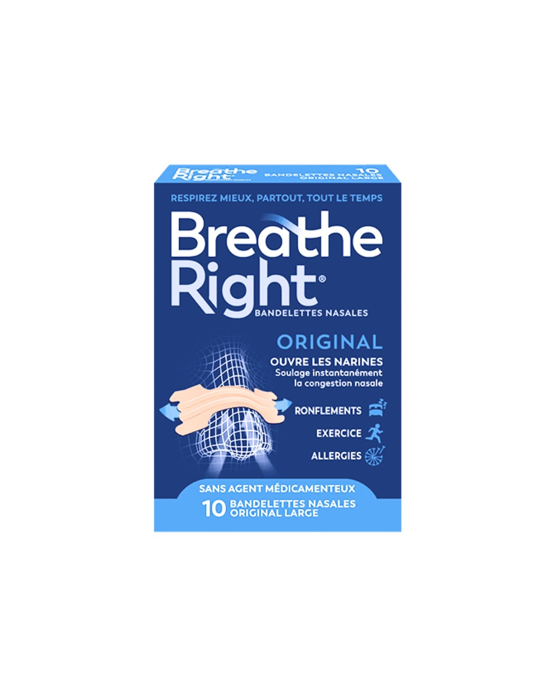 Les bandelettes nasales Breathe Right® peuvent être utilisées pour vous aider à inspirer plus d’air et à mieux respirer si vous souffrez de ronflements ou d’allergies dus à une congestion nasale, mais également lorsque vous faites de l’exercice ou que vous vous relaxez tout simplement.