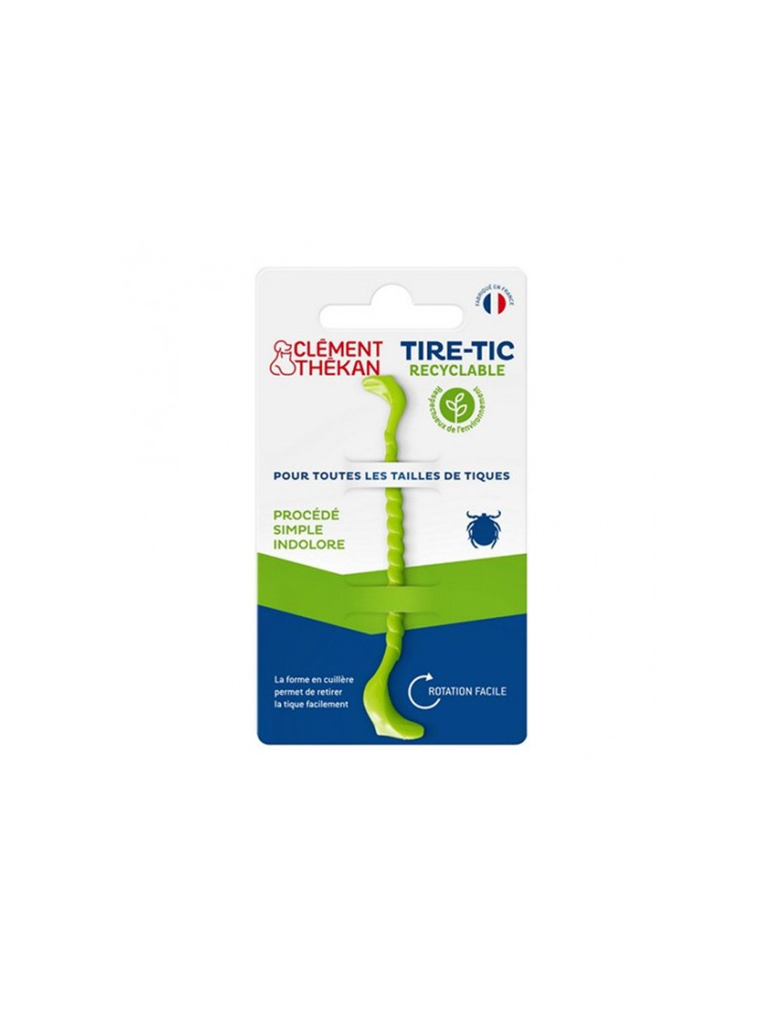 Pour toutes les tailles de tiques. Procédé simple et indolore. La forme en cuillère permet de retirer la tique facilement. Respectueux de l'environnement.