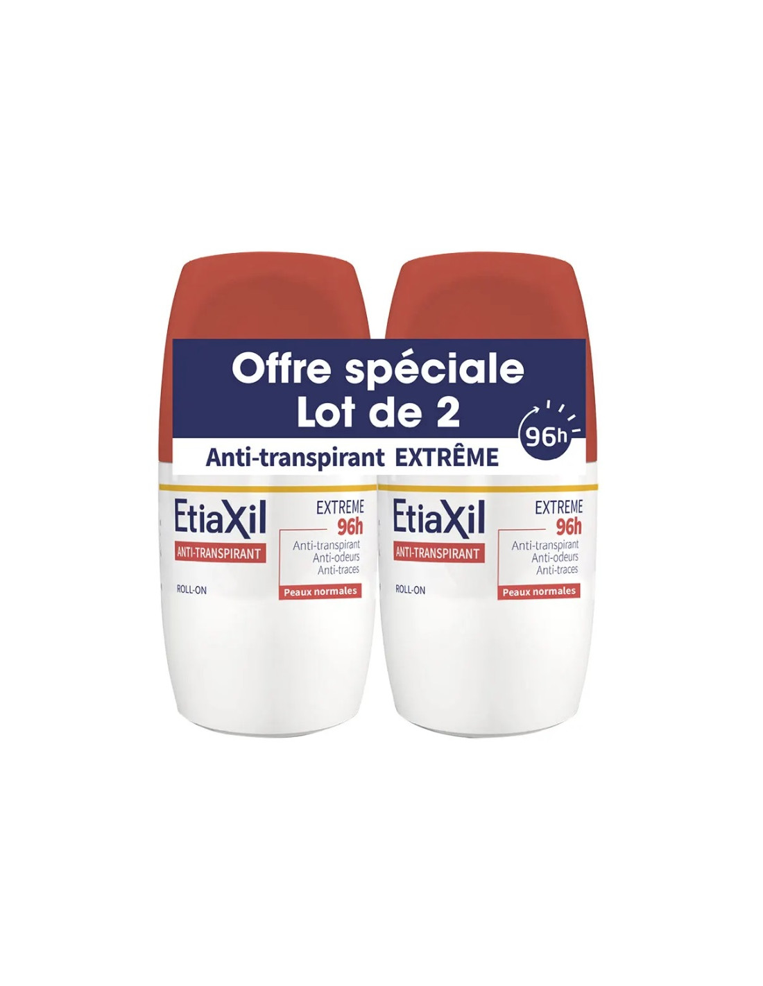 L'anti-transpirant Etiaxil Extrême 96h est conçu pour offrir une protection continue contre les effets indésirables de la transpiration modérée pendant 96 heures. Son efficacité est cliniquement prouvée. Il neutralise les mauvaises odeurs et absorbe l'humidité, assurant une fraîcheur très longue durée sans compromis pour les peaux normales. Anti-traces jaunes & blanches, il protège sans faire de marque sur les vêtements. Formulé avec 0% d'alcool* et avec un parfum frais et mixte.