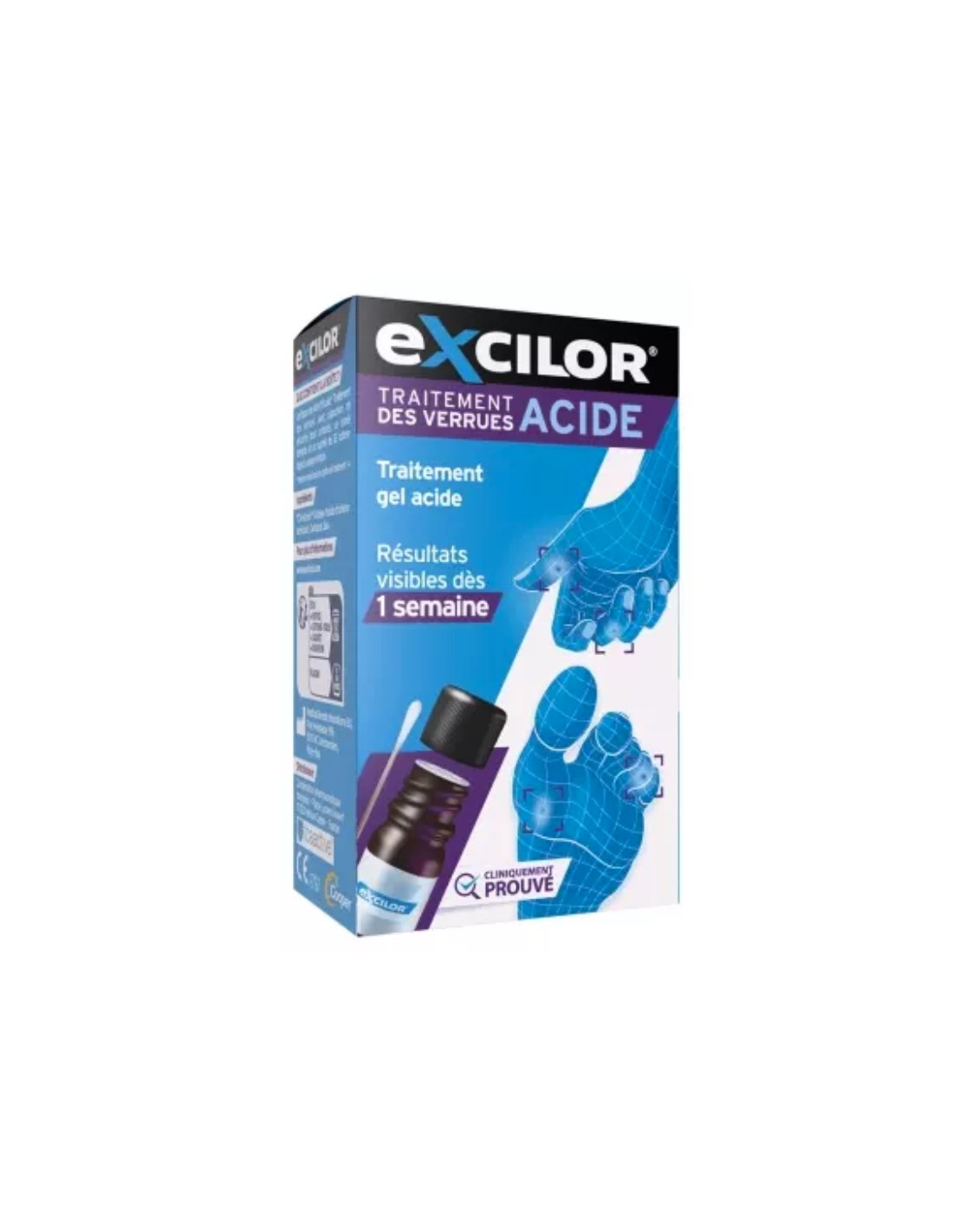 Le traitement gel acide pour verrues Excilor est un dispositif médical permet de traiter rapidement et efficacement les verrues des mains et des pieds.
