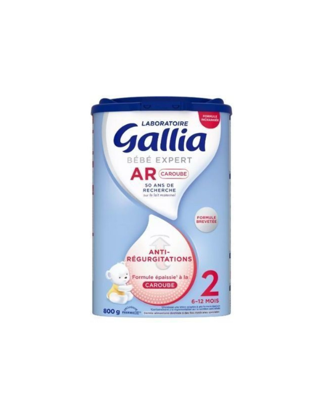 Lait 2ème âge AR Bébé Expert des Laboratoires Gallia, formule infantile qui contribue à répondre aux besoins nutritionnels en cas de régurgitations persistantes du nourrisson de ses 6 mois jusqu'à 1 an.