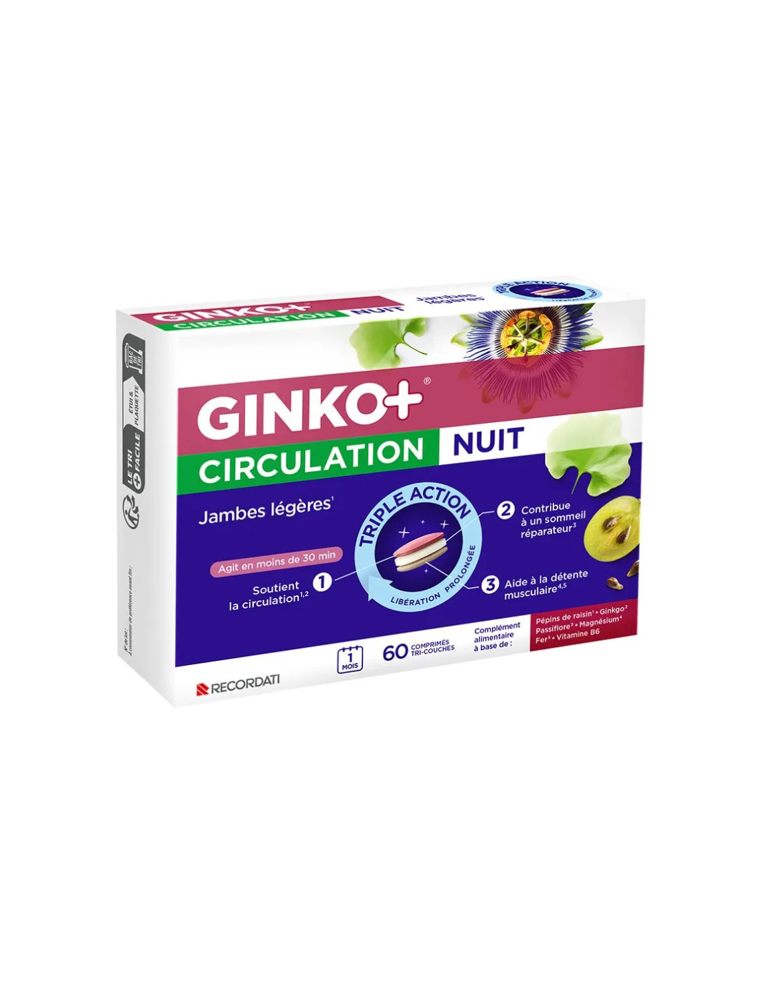 Ginkor Ginko + Circulation Nuit 60 Comprimés est un complément alimentaire spécialement conçu pour les personnes aux jambes fatiguées et inconfortables le soir et durant la nuit.