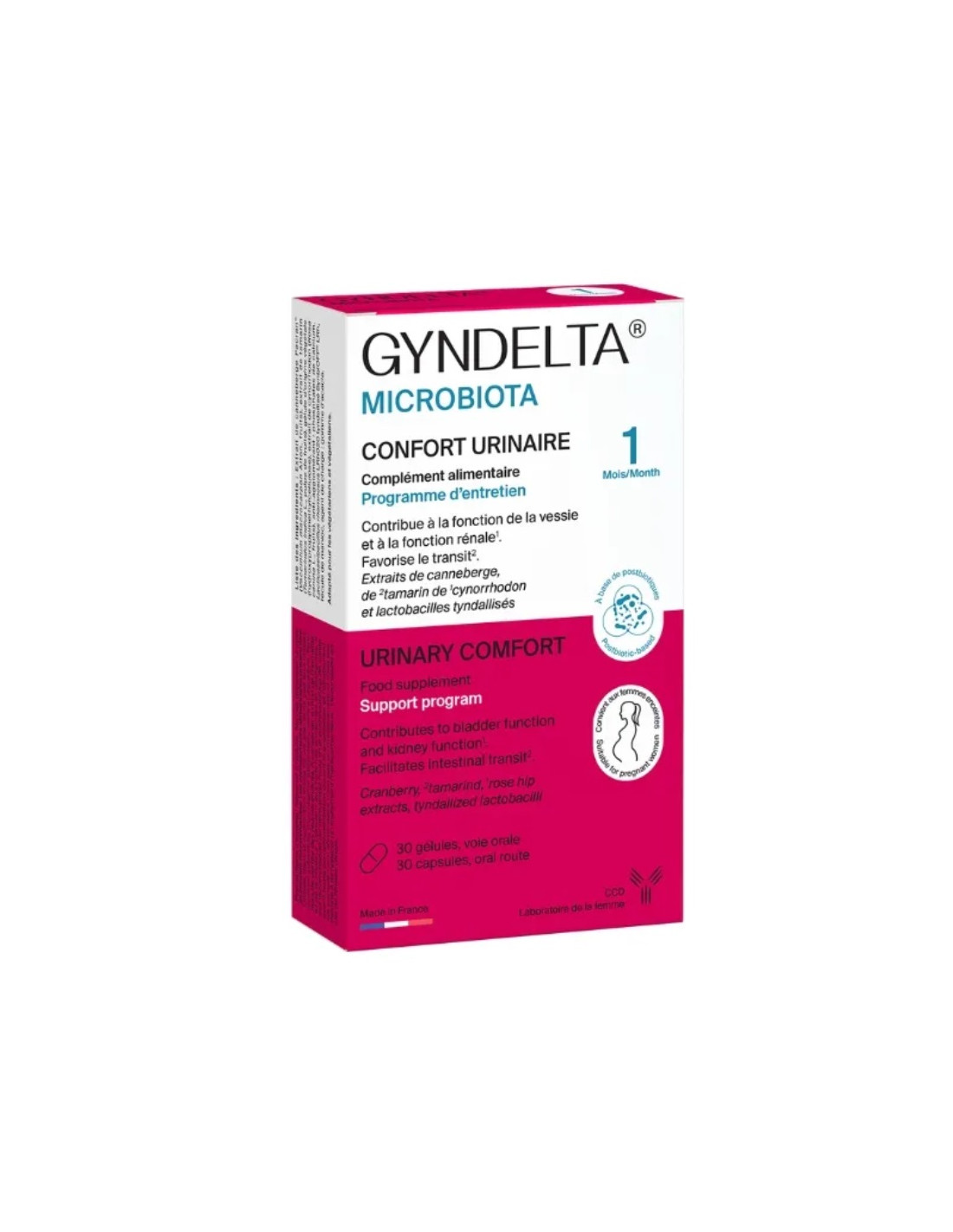 GYNDELTA® MICROBIOTA est un complément alimentaire formulé à partir d’extraits de canneberge, de tamarin, de cynorrhodon et de lactobacilles tyndallisés. Il est spécifiquement conçu pour favoriser le confort urinaire et soutenir le transit, en particulier chez les femmes confrontées à des inconforts urinaires récurrents. Son programme d’entretien est à visée des inconforts urinaires fréquents, notamment en cas de facteurs favorisants.