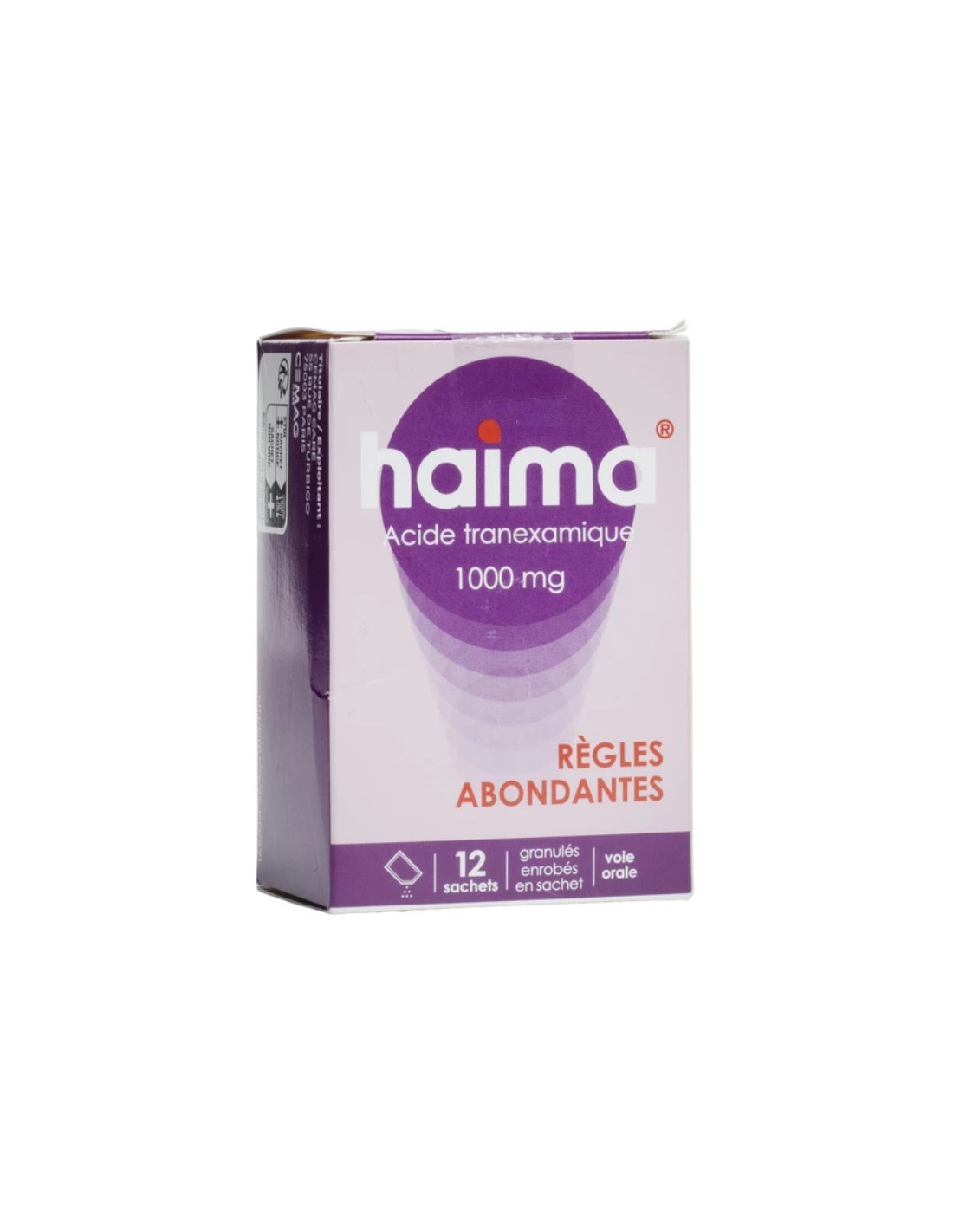 La posologie recommandée est de 1 sachet 3 fois par jour aussi longtemps que nécessaire jusqu'à 4 jours (1 sachet toutes les 6 à 8 heures). En cas de menstruations très abondantes, la posologie peut être augmentée. La dose totale ne doit pas dépasser 4 g par jour (4 sachets). Le traitement par HAIMA ne doit pas être démarré avant la survenue des menstruations.