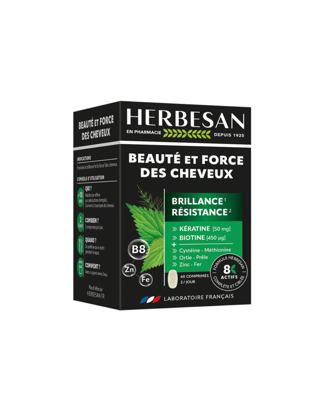 Herbesan Beauté et force des cheveux est un complexe de 8 actifs pour conserver de beaux cheveux brillants et favoriser la force et la résistance des fibres capillaires.