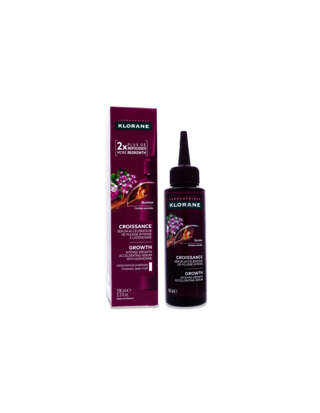 Sa formule unique associe la Quinine extraite du Quinquina médicinal à l'Adénosine. Ces ingrédients agissent en synergie pour activer et accélérer la pousse des cheveux. Enrichi en Kératine-like, un actif d'origine naturelle, ce sérum répare en profondeur.
