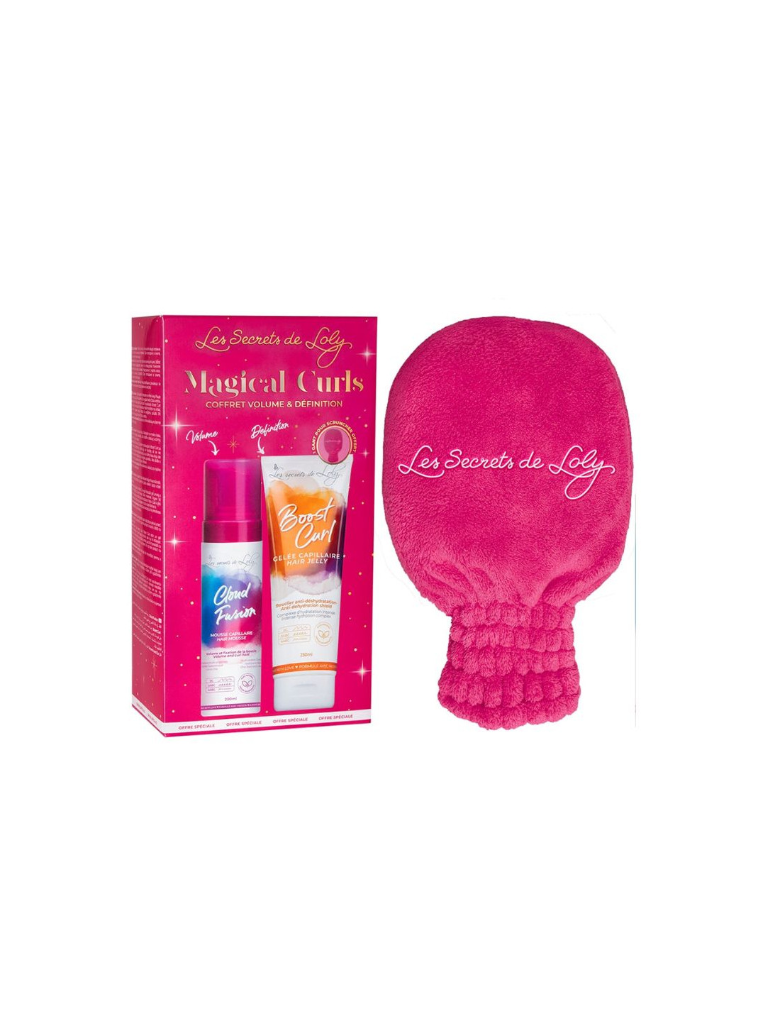 Ce coffret contient trois essentiels pour des boucles magiques : volume naturel, définition parfaite et essorage tout en douceur.