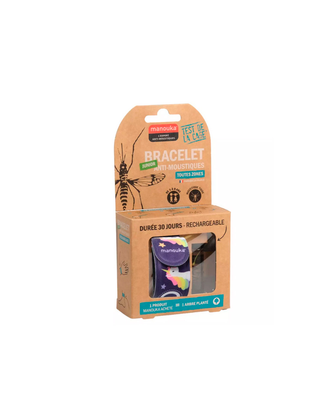 Ce bracelet anti-moustiques taille enfant motif licorne, adaptable de 3 à 9 ans, de Manouka, le spécialiste de l'anti-moustique, vous protège en toutes circonstances, toutes zones. Il s'accroche au poignet ou à la cheville afin de repousser les moustiques et limiter les risques de piqûres.
