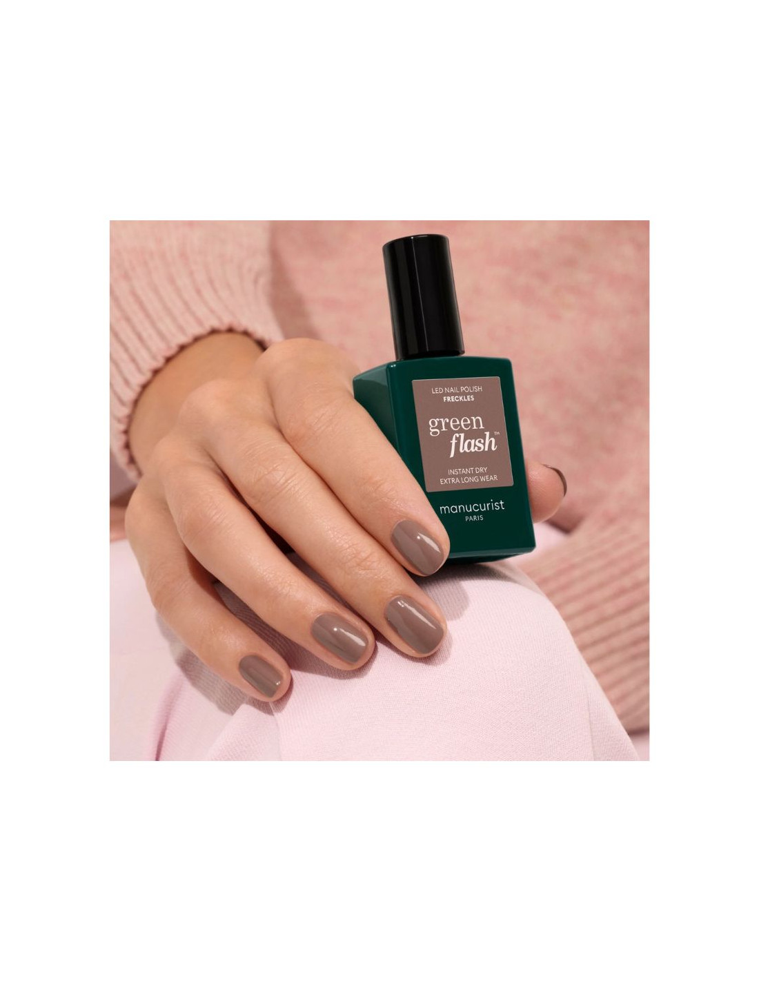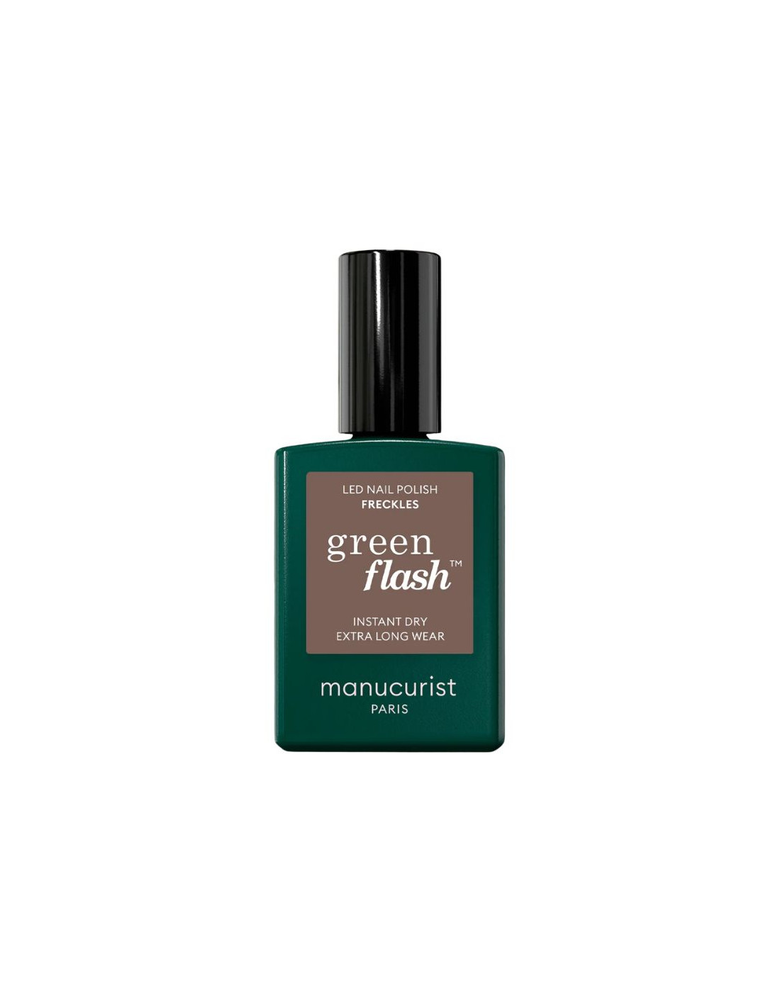 Le vernis Green Flash Manucurist teinte Freckles est un vernis semi-permanent LED conçu pour offrir une manucure longue tenue tout en respectant la santé de l’ongle. Sa couleur marron aux sous-tons froids apporte une touche élégante, naturelle et sophistiquée.