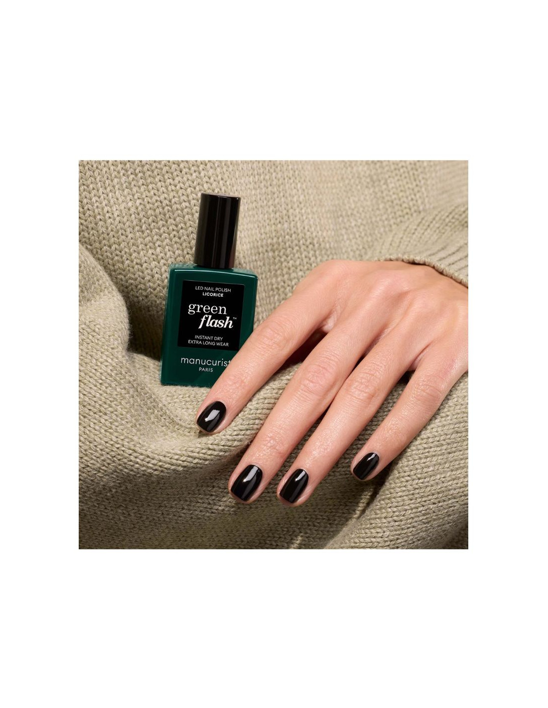 Le vernis Green Flash Manucurist teinte Licorice est un vernis semi-permanent LED conçu pour offrir une manucure longue tenue tout en respectant la santé de l’ongle. Sa couleur noir profond apporte une touche élégante, intemporelle et sophistiquée.