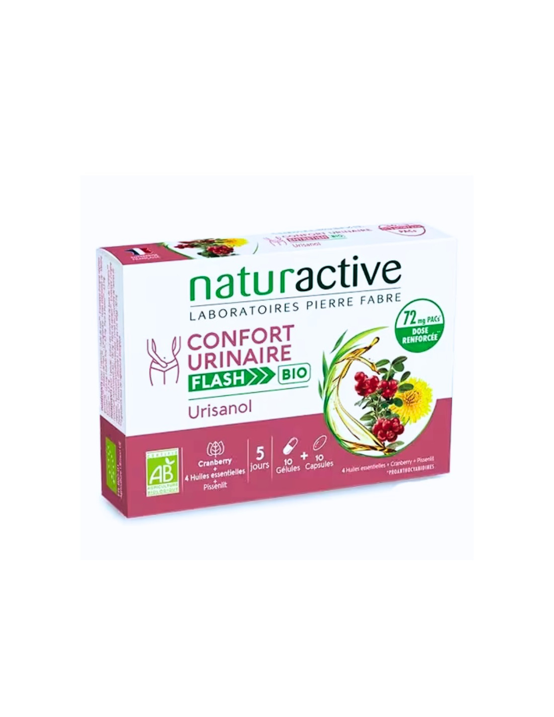 Le complément alimentaire Urisanol Flash de Naturactive est conseillé pour réduire les gênes urinaires et cystites.
