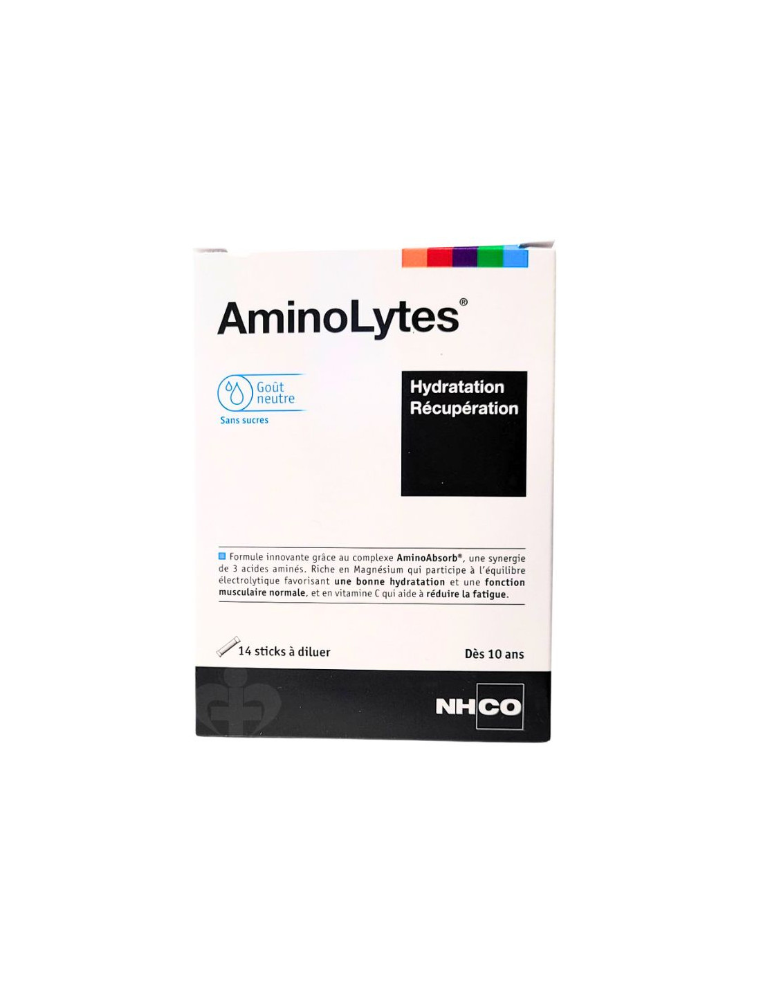 Nhco Aminolytes est une formule innovante grâce au complexe AminoAbsorb®, une synergie de 3 acides aminés. Riche en Magnésium qui participe à l’équilibre électrolytique favorisant une bonne hydratation et une fonction musculaire normale, et en vitamine C qui aide à réduire la fatigue. Goût neutre pour une prise facile.