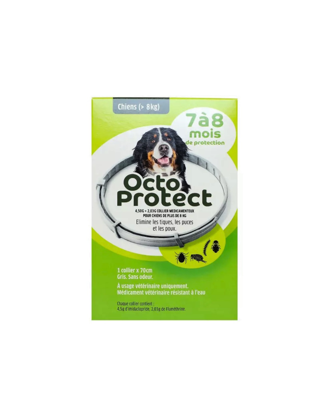 Octoprotect d’Elanco est un collier antiparasitaire pour chiens, offrant 7 à 8 mois de protection contre les puces, tiques et poux.
