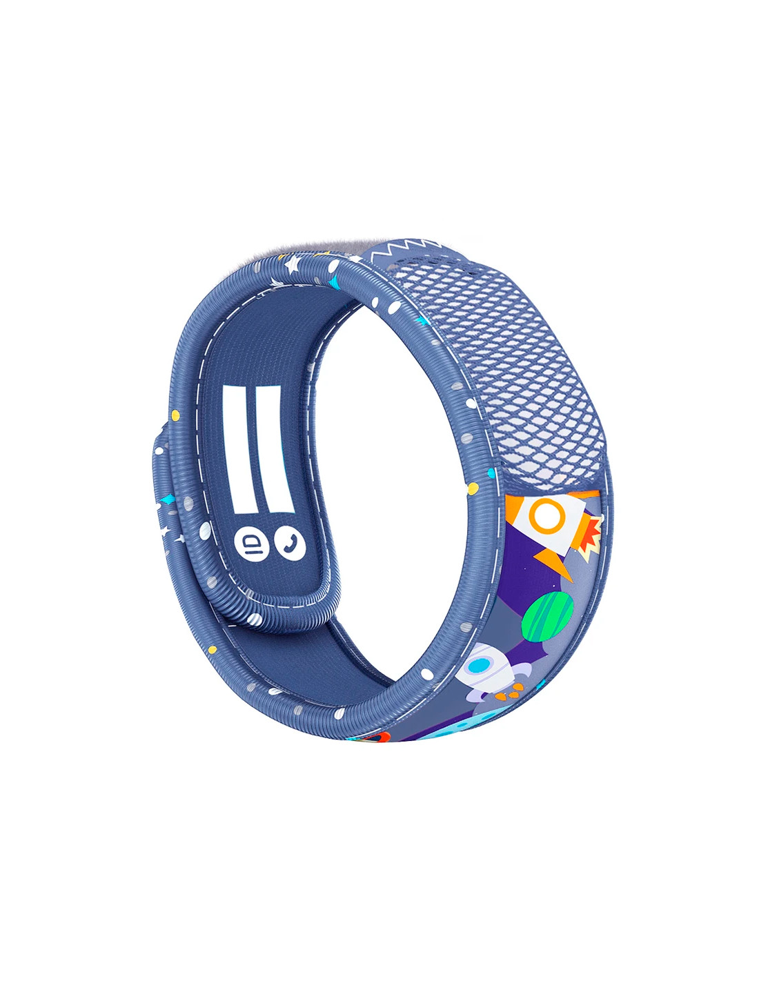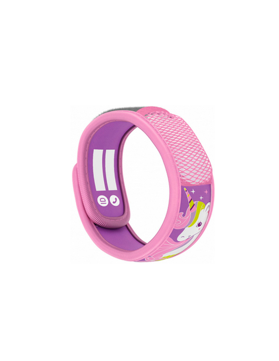 La plaquette recharge se glisse à l’intérieur de la poche filet située à l’extérieur du bracelet enfant.