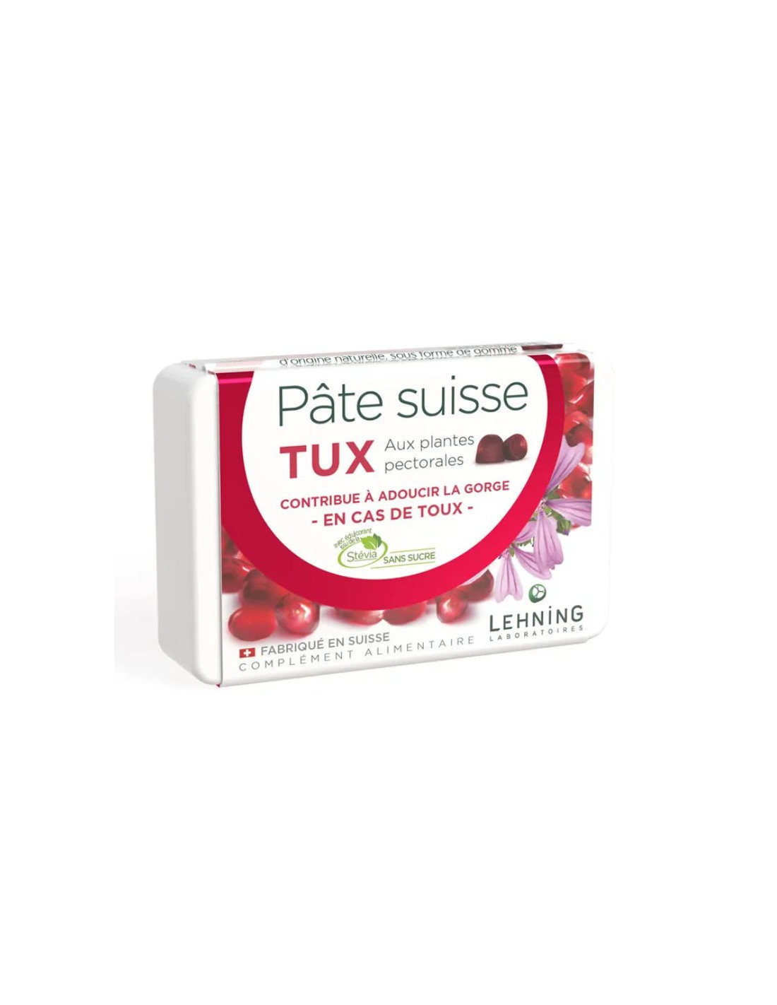 La pâte suisse Tux aux plantes pectorales contribue à adoucir la gorge en cas de toux et au bon fonctionnement des voies respiratoires.Propriétés: