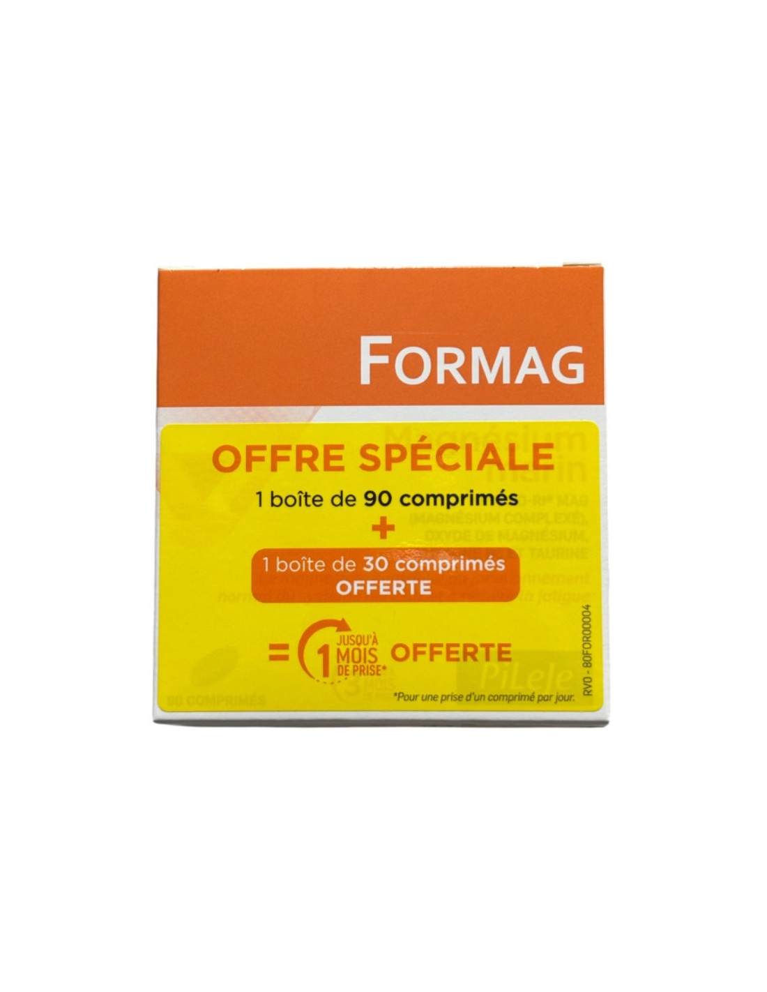 Formag se présente sous forme de comprimés, composés de magnésium marin Hypro-ri© Mag, extrait de la Mer Morte reconnue pour sa haute concentration en sels minéraux, afin de favoriser le bon fonctionnement du système nerveux.