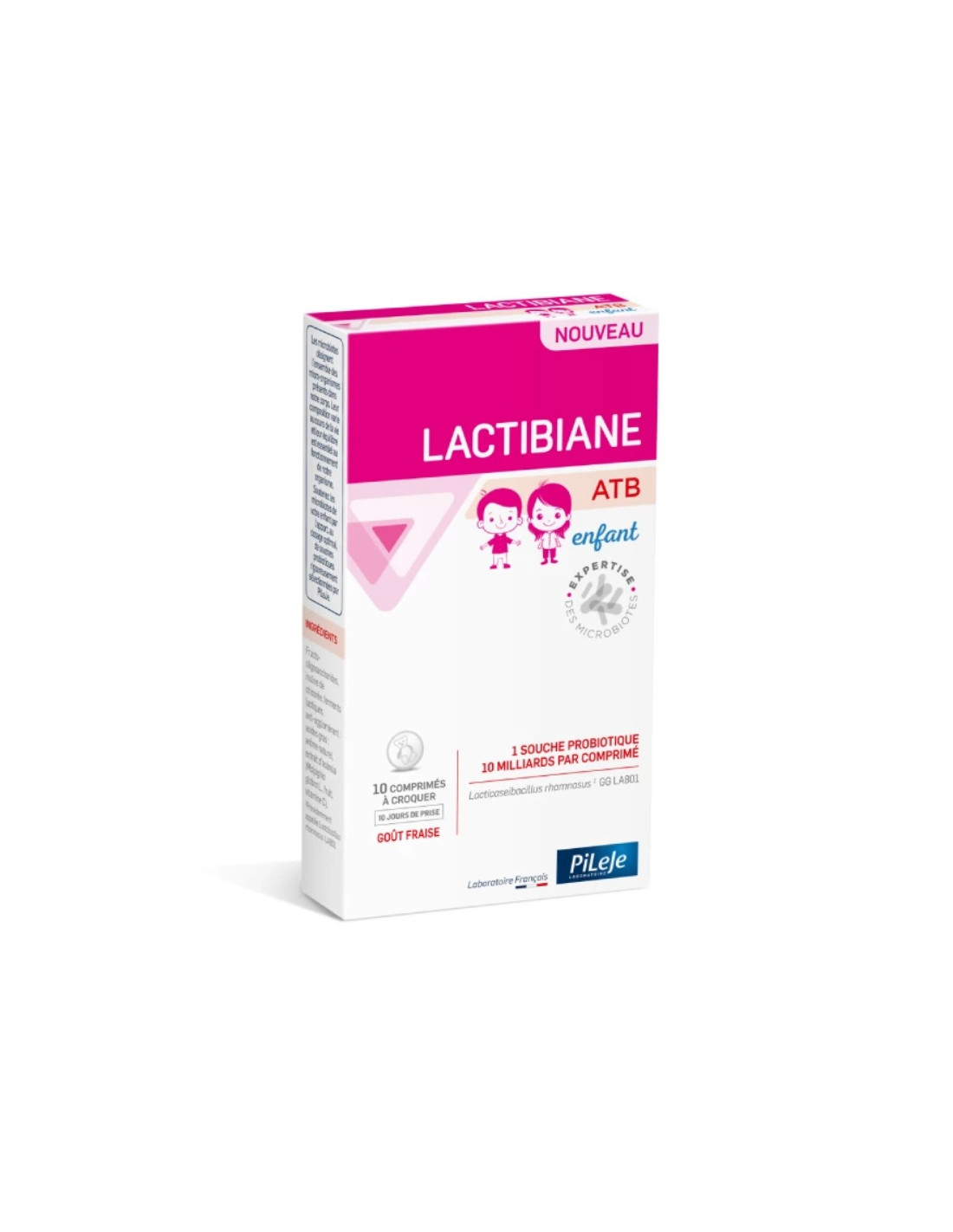 Lactibiane ATB Enfant est formulé pour accompagner l’équilibre du microbiote intestinal chez l’enfant. Il apporte une souche probiotique spécifique, dosée à 10 milliards par comprimé à croquer, afin d’aider à maintenir une flore intestinale harmonieuse, notamment lorsqu’elle est fragilisée, comme lors ou après une prise d’antibiotiques. Sa formule inclut également de la vitamine C, qui contribue au fonctionnement normal du système immunitaire. La forme à croquer rend la prise facile et adaptée aux enfants.