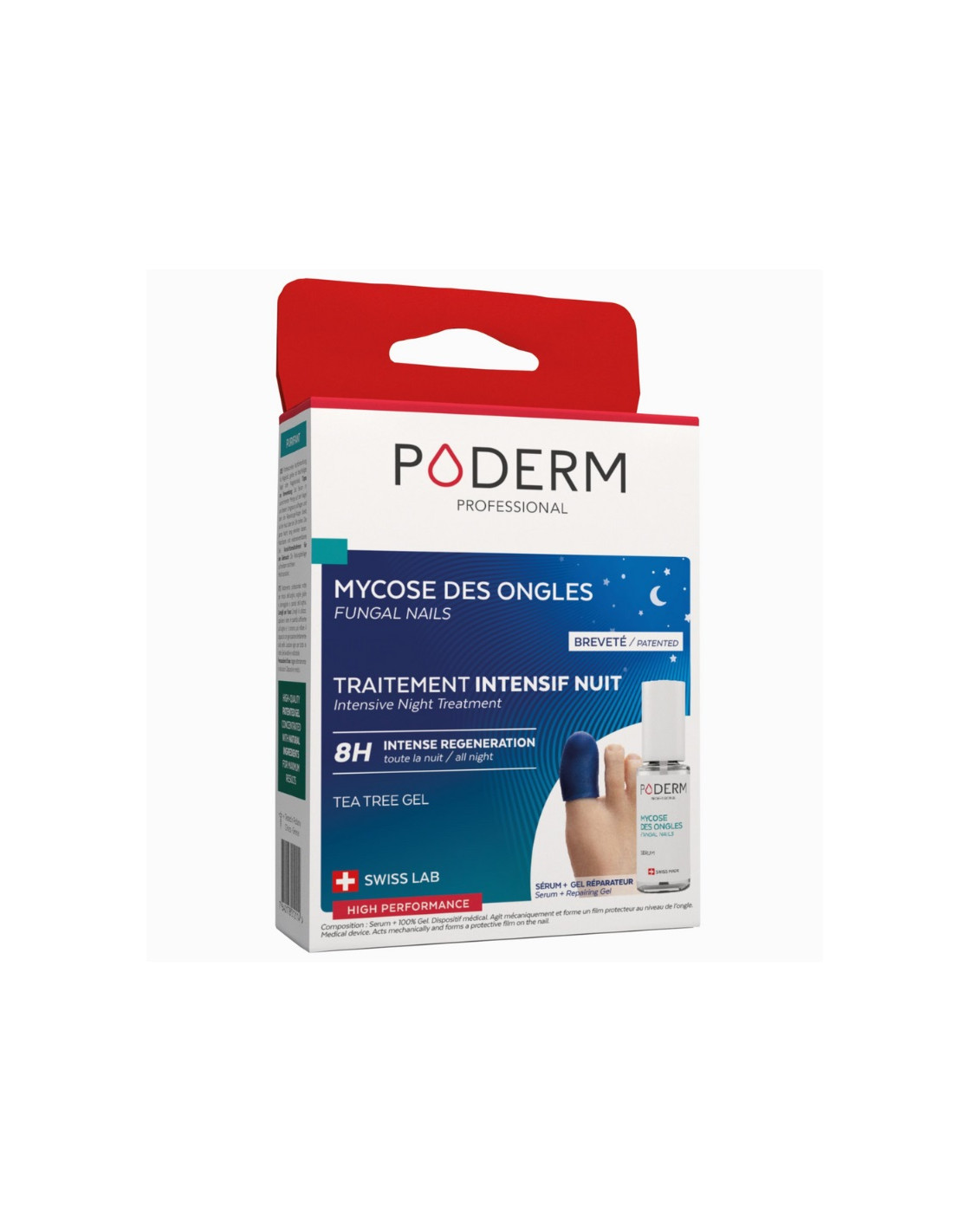 Le Traitement Intensif nuit - Mycose des ongles PODERM® est composé d’un Sérum Mycose des Ongles PODERM® et d’un Capuchon en Gel Réparateur PODERM®. Il agit pendant le sommeil pour lutter en continu jusqu’à 8h contre la mycose des ongles tout en améliorant l’apparence visuelle des ongles jaunes et abîmés par les champignons.