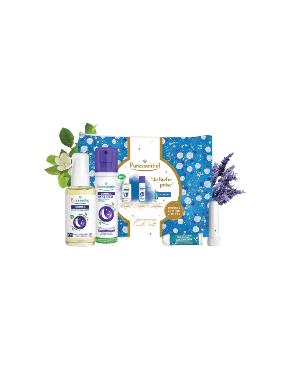 - 1 Huile de Massage BIO Sommeil 100 ml, qui aide à calmer les tensions quotidiennes et à favoriser un sommeil serein. En associant les bienfaits d'un massage relaxant aux vertus des huiles essentielles de Lavande Vraie et Néroli, vous pourrez profiter d'un moment de détente ressourçant.