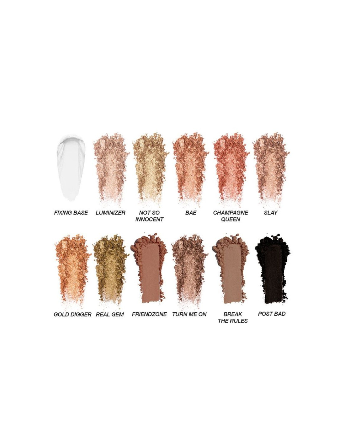- eyeshadow slay (6) : mica (ci 77019), ci 77491 (iron oxide), talc, phenyl trimethicone, lanolin, ci 77891 (titanium dioxide), synthetic fluorphlogopite, olus (vegetable) oil, paraffinum liquidum (mineral oil), ci 77499 (iron oxide), bht, candelilla cera (candelilla wax), ci 77492 (iron oxide), dehydroacetic acid, dimethicone, hydrogenated vegetable oil, polymethyl methacrylate, zinc stearate