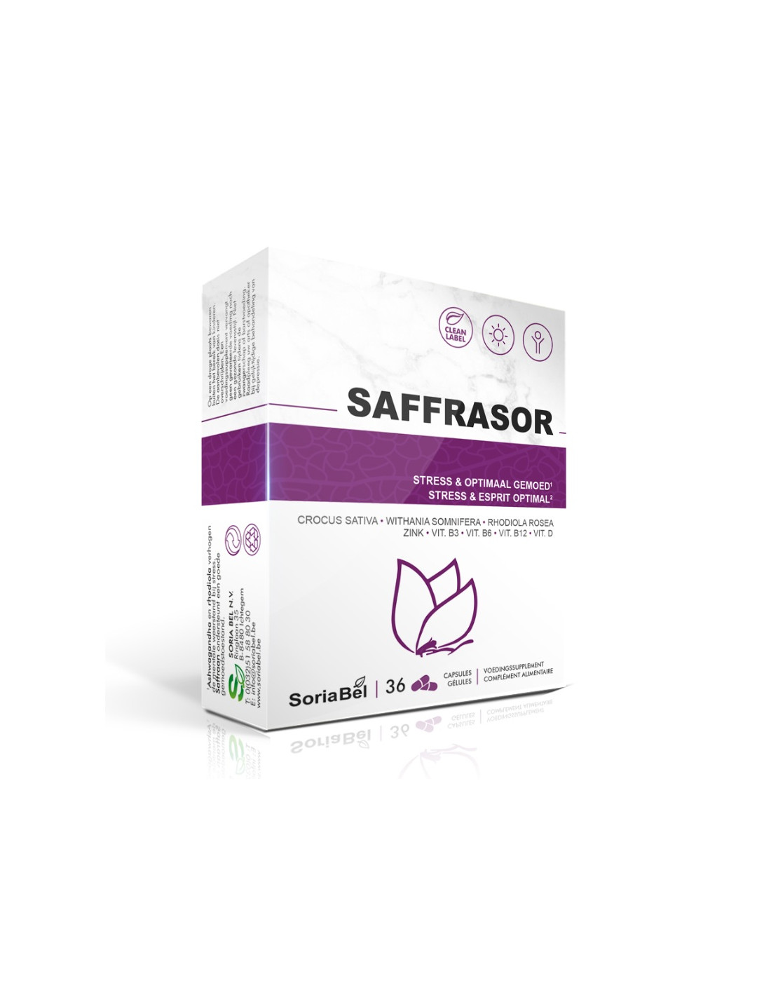 Grâce à sa combinaison d’extraits de safran, d’ashwagandha et de rhodiole, Saffrasor CT contribue au maintien de l’équilibre émotionnel et aide l’organisme à mieux faire face au stress. Sa formule soutient les fonctions mentales et favorise une meilleure résistance lors de périodes de surmenage ou de fatigue psychologique. Les vitamines du groupe B et la vitamine D participent au métabolisme énergétique normal et au bon fonctionnement du système nerveux, tandis que le zinc contribue au maintien des fonctions physiologiques normales. La technologie de cyclodextrine utilisée dans la formulation permet une absorption optimisée des actifs pour une efficacité renforcée.