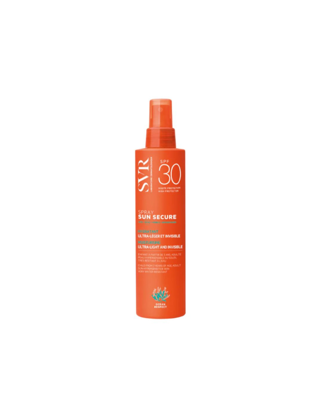 Le Sun Secure Spray SPF30 SVR est une protection solaire visage et corps conçue pour protéger efficacement la peau contre les rayons UV tout en offrant une application rapide et homogène. Il convient à toute la famille et est idéal pour une utilisation quotidienne en conditions d’ensoleillement modéré.