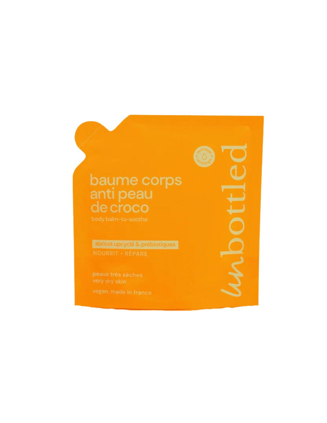La recharge du baume corps anti peau de croco Unbottled est destinée à recharger le pot du soin nourrissant pour peaux très sèches, sensibles ou à tendance atopique. Elle permet de prolonger l’utilisation du baume tout en réduisant l’impact environnemental.
