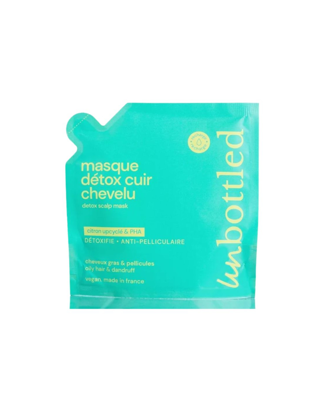 La recharge du Masque Détox Cuir Chevelu Unbottled est destinée à recharger le pot du soin purifiant pré-shampoing conçu pour les cuirs chevelus gras, sujets aux pellicules ou à un excès de sébum. Elle permet de prolonger l’utilisation du produit tout en réduisant les déchets plastiques.