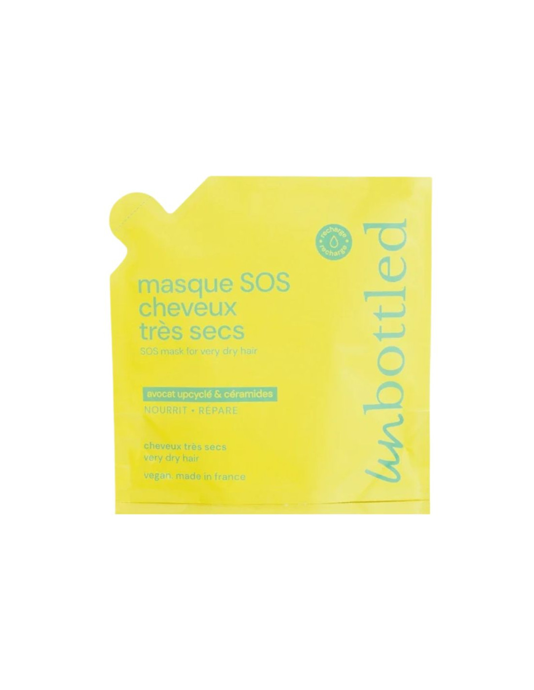 La recharge du Masque SOS Cheveux Très Secs Unbottled est destinée à recharger le pot du soin capillaire nourrissant intensif conçu pour les cheveux très secs, abîmés ou en manque de nutrition. Elle permet de prolonger l’utilisation du produit tout en réduisant l’impact environnemental.