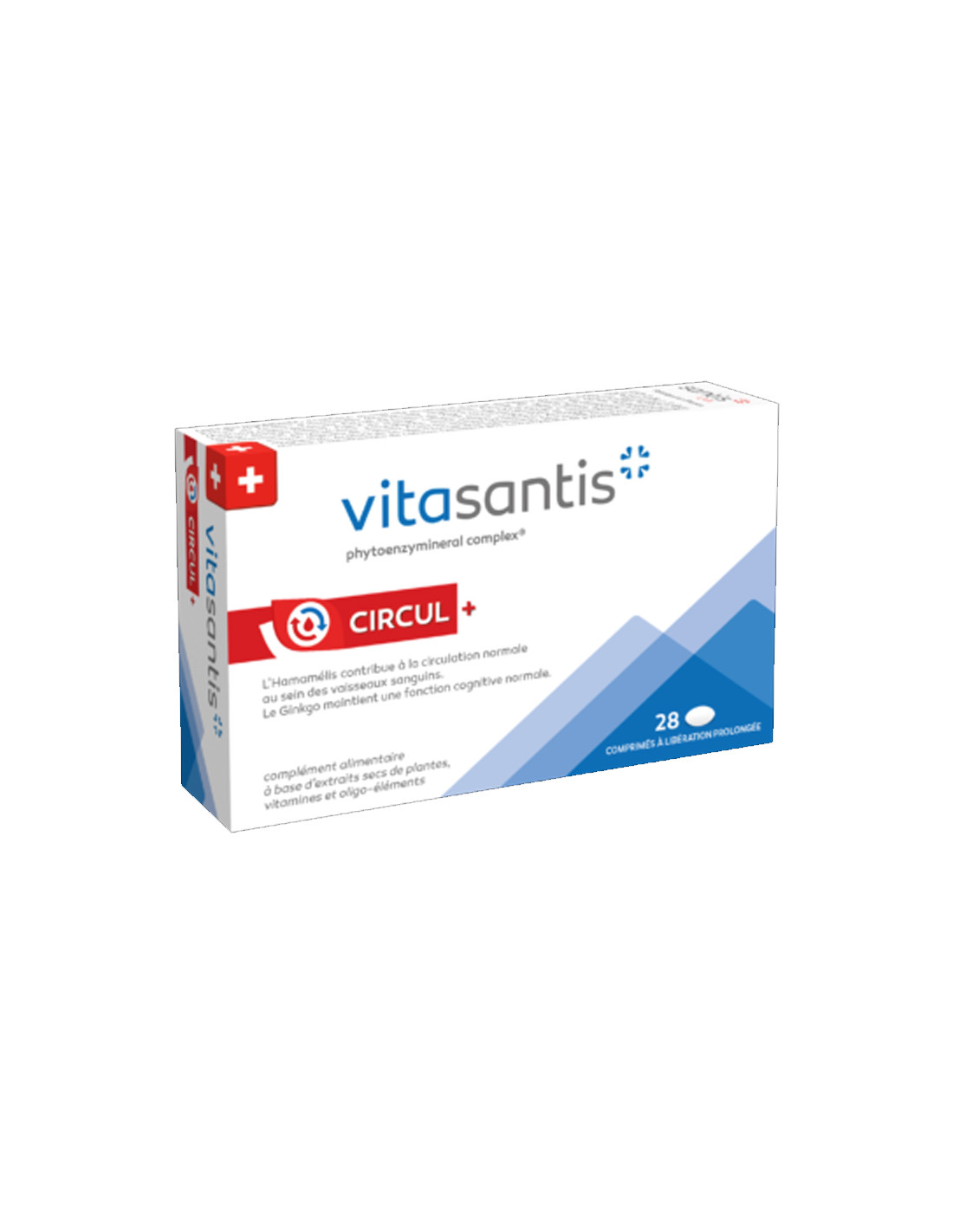 Vitasantis® Circul+ est un riche mélange d’Extraits Secs de plantes, de Vitamines et d’Oligo-éléments. Il s'utilise pour améliorer le retour veineux et lymphatique, et la plupart des symptômes liés aux troubles de la circulation (varices). Mais il est également efficace contre les œdèmes, crevasses ou engelure, et soulage également les jambes lourdes ou douloureuses, les crises hémorroidaires et certains cas d'acouphènes.