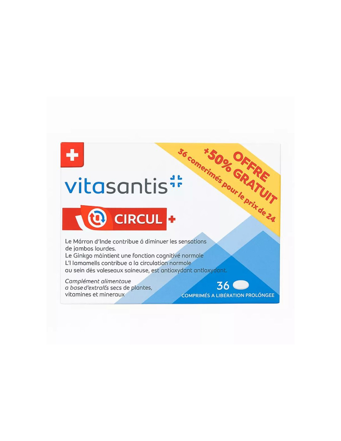 La boite de 36 comprimés Vitasantis Circul+ au prix de la boite de 24, soit +50% OFFERT !
